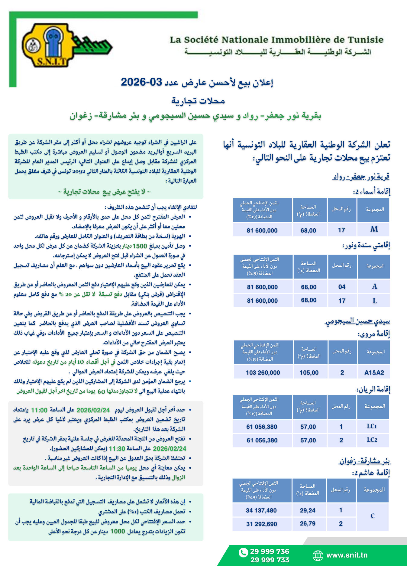 إعلان بيع لأحسن عارض (محلات تجارية) عدد 03-2026