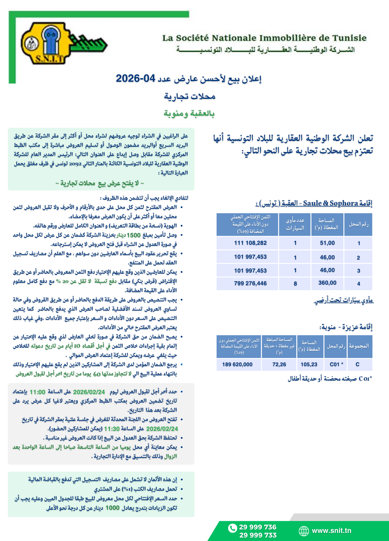 إعلان بيع لأحسن عارض (محلات تجارية) عدد 04-2026