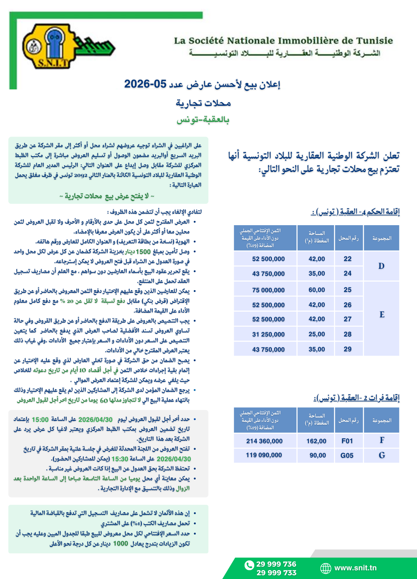 إعلان بيع لأحسن عارض (محلات تجارية) عدد 05-2026