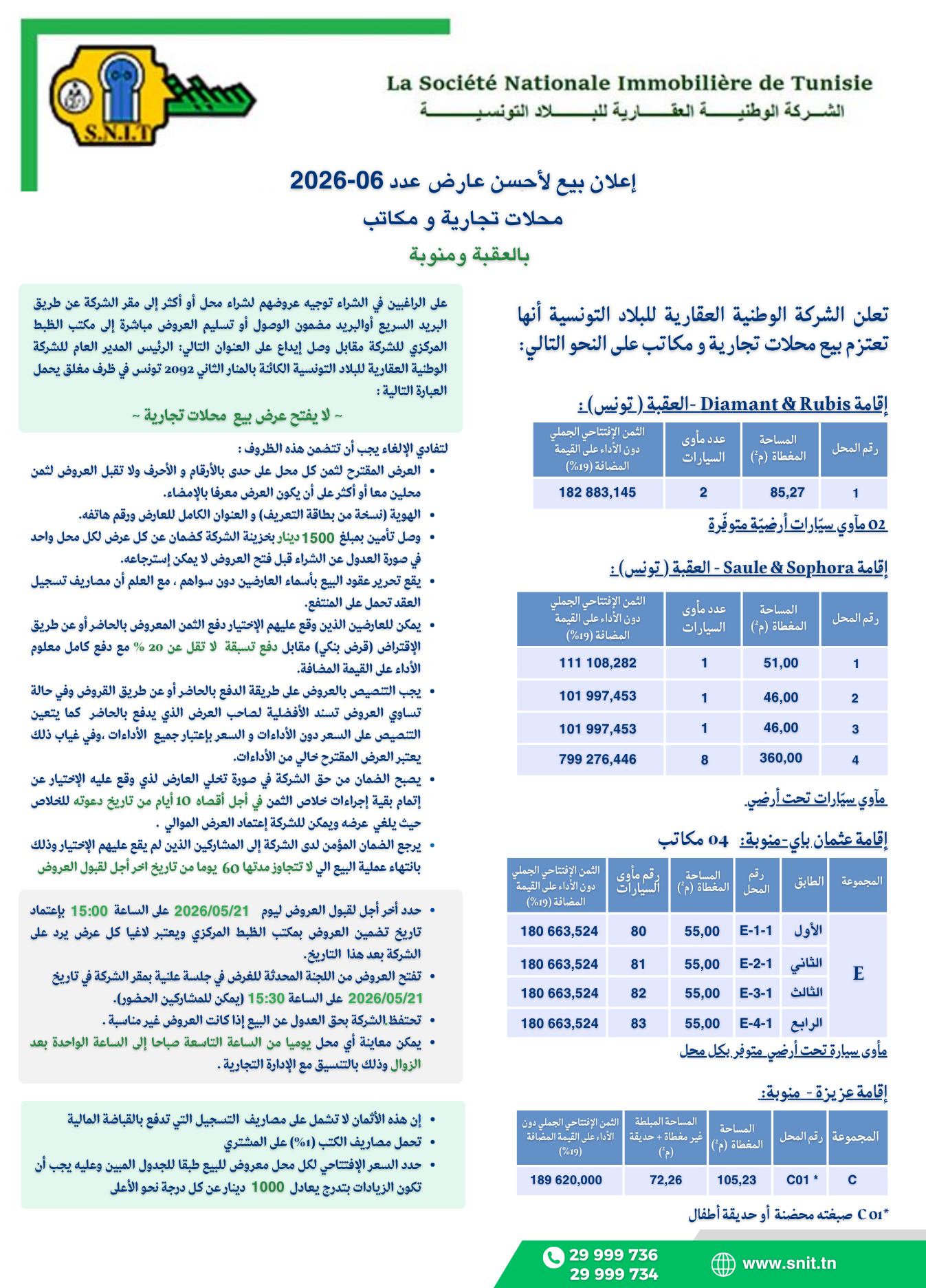إعلان بيع لأحسن عارض (محلات تجارية ومكاتب) عدد 06-2026