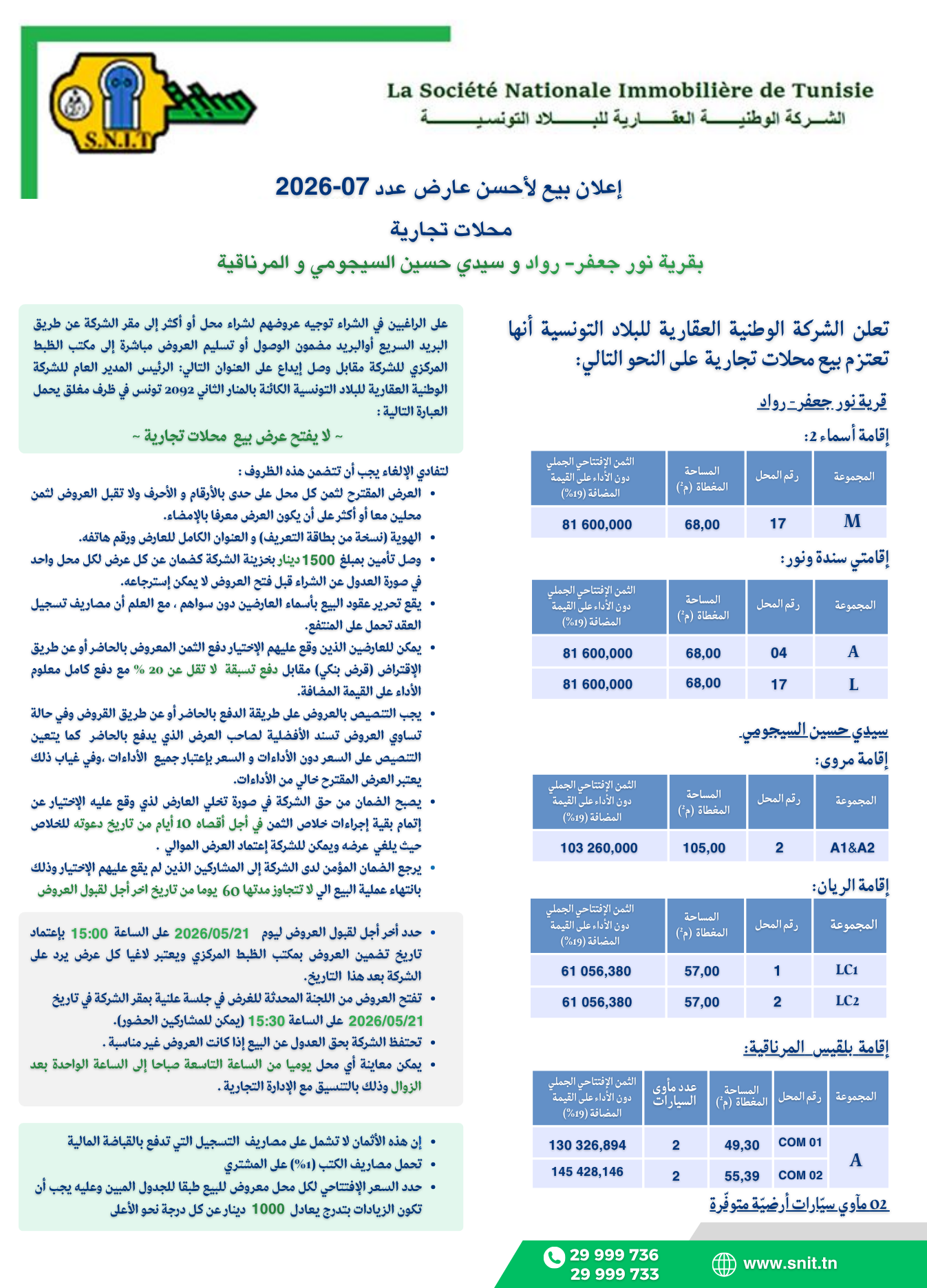 إعلان بيع لأحسن عارض (محلات تجارية) عدد 07-2026